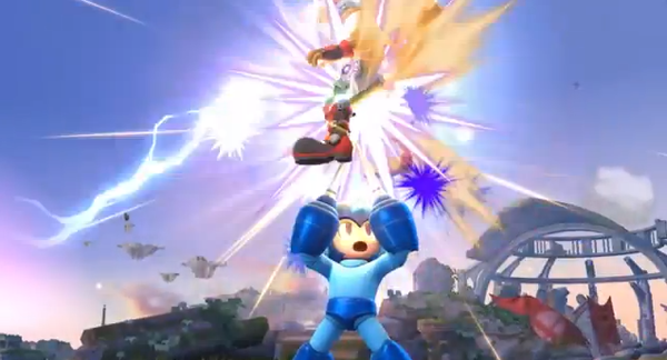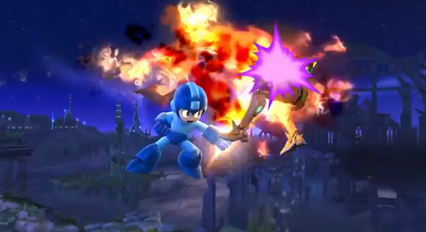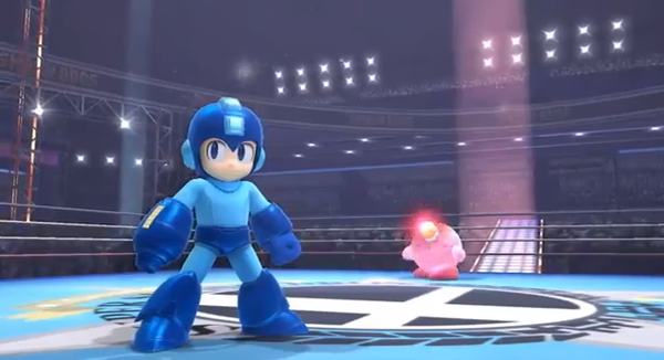 Poor Kirby takes one to the head. And Mega Man sure seems pleased with himself!