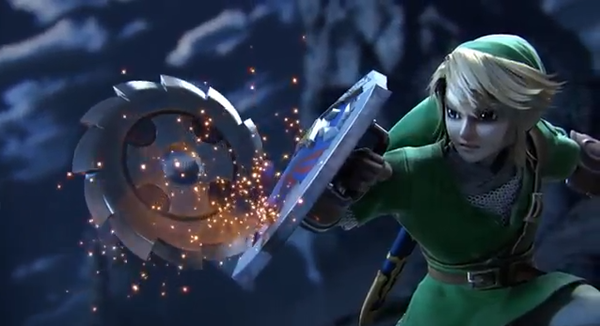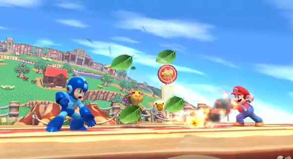 While we don’t see this in-game, the gorgeous cutscene depicts MM tossing a Metal Blade directly at Mario and Link. Mario takes a hit, while Link deflects it with his shield. Also, may I just say how AWESOME it is to see a Metal Blade bouncing off Link’s shield 0_0