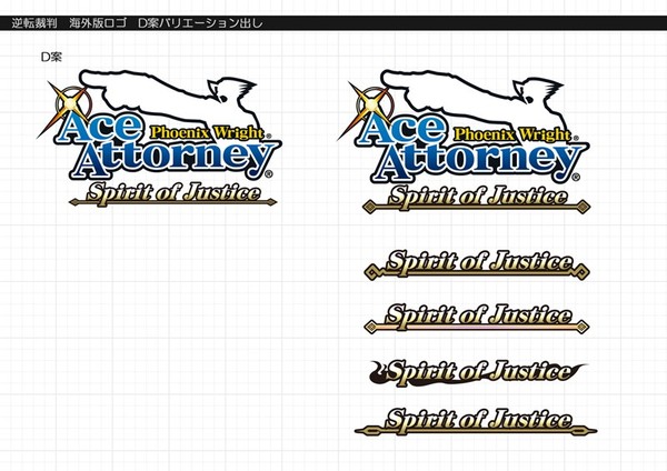 When you first turn on the game, the very first thing you see is the title screen, but did you ever wonder how we create and design each game’s logo? Well, for Spirit of Justice, we asked Mr. Naoyuki Tsuchiya, a designer who specializes in logos and packaging. These are just a few of his initial ideas.