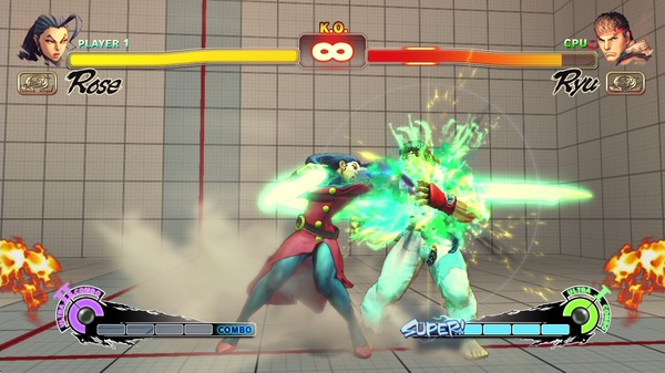 Rose has primarily been a character who waits and responds to her opponent, but by giving her this multi-hit forward-moving super combo we’re hoping to make Rose into a more aggressive character. The different punch buttons lead to different variations—the fierce punch version gives you Soul Spark Tre, which starts off with a strengthened version of Soul Reflect and leads into Soul Spark. Makes you feel like Alpha series Rose is back, doesn’t it?