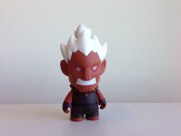 Here’s a refresher on design of the Kidrobot figure and despite the distinct art styles and media (illustration vs. sculpture), you can definitely see Shin Akuma’s demonic rage oozing through…