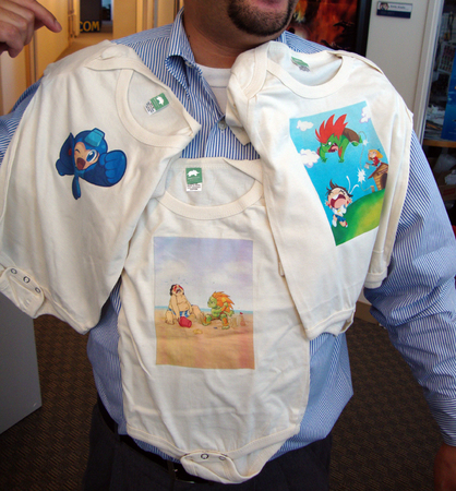 We have some new Capcom babies here in the office, and to congratulate the new families, we created some super cute onesies for them. There’s the Salamander from LP2, Dark Void, a few Street Fighter babies, Zombie, and Mega Man.