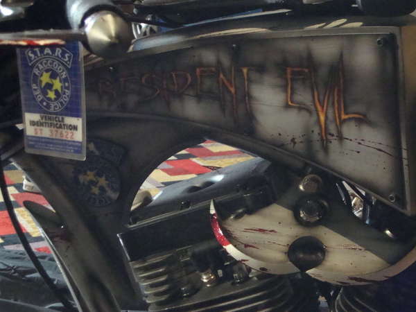 Not only did we have our Dark Void launch party last night, but Savage Cycles also debuted the official Resident Evil motorcycle mere footsteps away from the party (those are Tesla Roadsters in the background for Dark Void, just in case you were wondering). You’ve seen it as a work in progress before, now we have plenty of pics to show you. The guys at Savage Cycles took the feedback that they got from the comments on Kramez’ previous post and added a ton of details that both casual and hardcore Resident Evil fans can appreciate. You can more pictures after the break, along with commentary by yours truly.