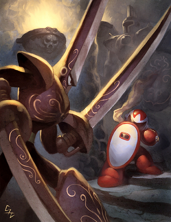 Shawn ( snow ): The color scheme and lighting in Garrett’s piece is what really draws me. I don’t know why, but Protoman is looking cooler than he’s ever been in Garrett’s painting. I have myself a new iPhone wallpaper to show off!