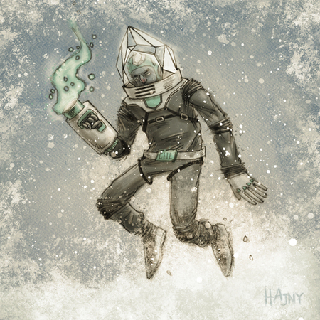 Seth (s-kill): I think the more realistic take in Chris H’s piece drew me in, and I like the slightly haggard look—the life of a Robot Master (is he even a robot?) isn’t all happy sunshine and roses. The art has an almost Edward Gorey-like quality and really puts the whole MM world in a different context. I also like the sinister gray and whites.