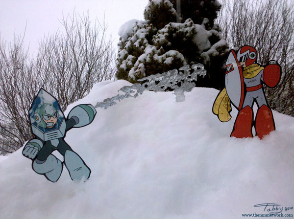 Joveth (jgonzo): I really, really like this piece by Fredo because it shows the Robot Masters in a fun, non-serious setting and in a cool art style. I love the fact that Chill man is so angry at (presumably) losing to Commando Man in either SFIV or TVC, that he had to freeze him. Plus, that Sheep Man is ADORABLE.