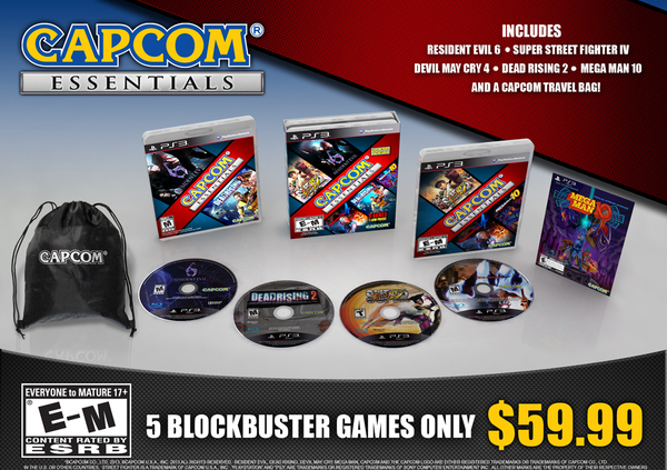 Resident Evil 6 , Super Street Fighter IV , Devil May Cry 4 , Dead Rising 2 , and Mega Man 10 are now available in one neat package – perfect for a holiday gift – called Capcom Essentials , for XBox 360 and PS3.