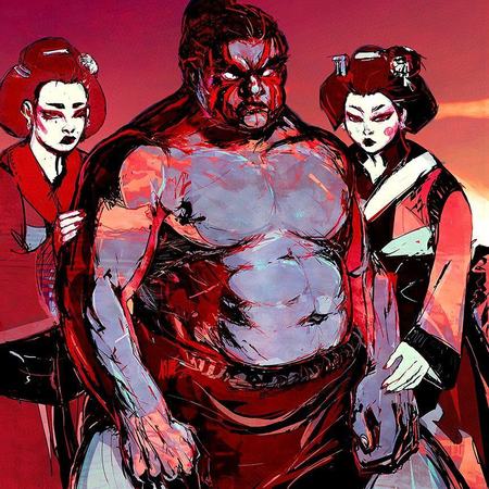This depiction is rather striking to me, as it shows a dark, “Bizarro” sinister side of the Sumo champion I’d never ever considered before. I guess we should be glad he’s on our side in the official canon.