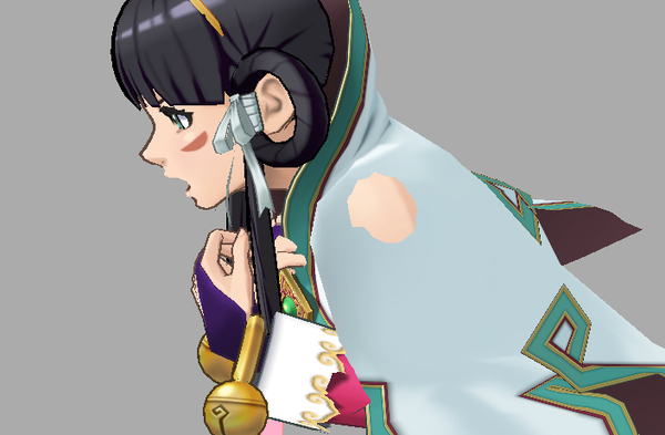 Because the decision to include Rayfa’s performance of the Dance of Devotion was made early in the game’s development, we based the quality of all of Spirit of Justice’s cutscenes on this dance. How we achieved this higher quality was to first have the presentation and camera work done using the regular Rayfa model, and then to make detailed adjustments to her model.