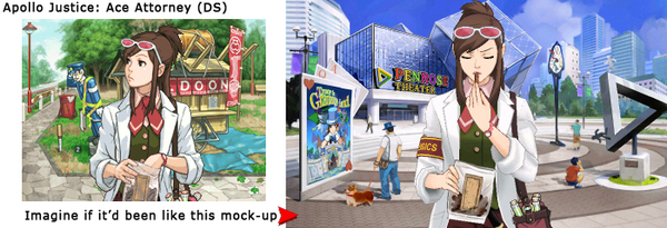 There were all sorts of challenges and struggles all throughout the development of Dual Destines as we transitioned from 2D sprites to 3D models, but I thought that since we’d more or less made all of the models already, and that since the art style wasn’t going to change, it would mean that Spirit of Justice was going to be a piece of cake. Little did I know that it would take more than twice the work of last time to create everything for this game… But just why did it have to be this way?! Well, here’s just a brief list of just some of the things we decided to do this time that we didn’t do in Dual Destinies .