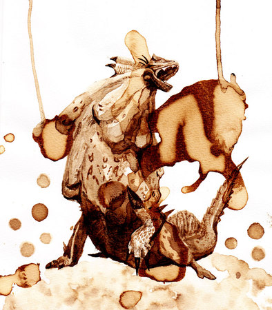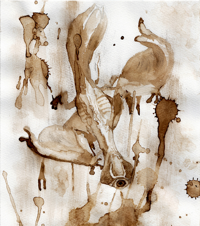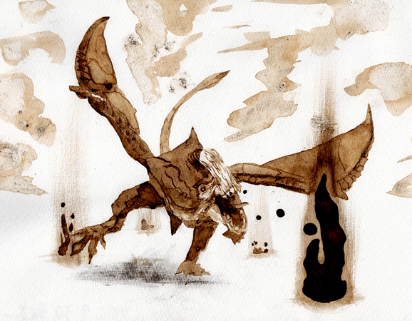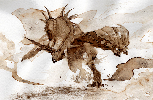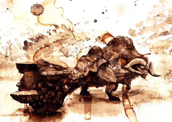 Who knew you can make art by mixing spilled coffee and cigarette* ashes? Sounds like something that started by accident, and it still seems like a crazy concept to me… but artist Hidehiko has proven that it works, with his “Coffee & Cigarettes” collection of MH fan art!