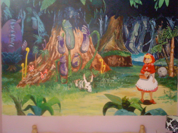“I showed my support for Darkstalkers this weekend by painting a scene from it on my niece’s bedroom wall for her upcoming 6th birthday. She wanted Red Riding Hood… I thought ‘R. R. Hood/B. B. Hood, what the hey…'”