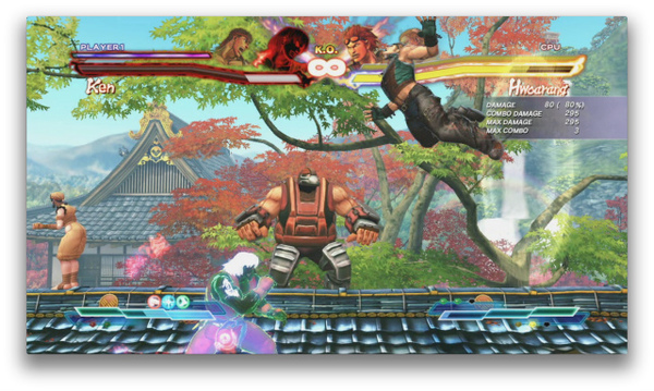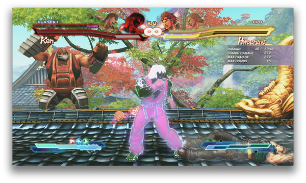 Juri – The Dark Spider. Xiaoyu – The Dancing Phoenix. Six new characters join the fray! Click here to see their promotional videos. But that’s not all! If we take a closer look at Episode 5… ↑Without a doubt, that’s Jin and M. Bison… These guys are also going to be playable…right? As I mentioned before I’m currently on a North American media tour, primarily focusing on spreading awareness about the Gem system. Here at Capcom we’ve thought up some Gem sets aimed towards beginner, intermediate, and advanced players, so here on today’s blog I’d like to talk a bit about that. Beginner’s Gem Set -Assist Gem (Auto Block) -Iron Wall Gem Lv. 1 (Increased Defense – Condition: Block 5 attacks) -Fortitude Gem Lv. 1 (Reduced Damage – Condition: Your partner connects with a Launcher attack) In order to better understand how this Gem set works, I’ve made a video for you. At first, it just looks like a regular battle against the CPU… ↑Low strong! ↑Low forward! ↑Chip damage from the Rising Uppercut Kazuya is definitely dishing out damage, but…! ↑A perfect victory! It’s thanks to the increased defense from the Iron Wall Gem as well as the damage reduction from the Fortitude Gem (your character won’t receive a fixed amount of damage). This is a great Gem set for those of you who have trouble beating the CPU.