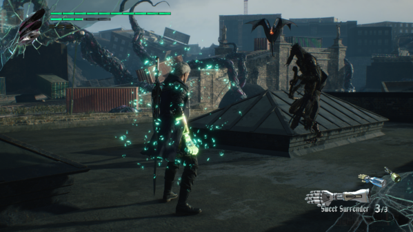 Sweet Surrender is more of a passive Devil Breaker. As long as Nero has this equipped he’s not going to be able to attack demons with it at all, but you can use it to slowly regenerate some health. If you’re really in a pinch, you can use Sweet Surrender’s Break Age ability to regenerate a bigger chunk of health. Either way, as long as you have Sweet Surrender equipped you’ll have to focus on racking up those sweet combos with Blue Rose and Red Queen.
