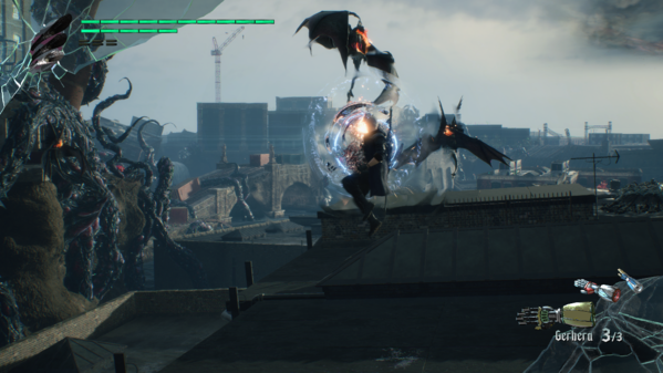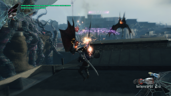 First up we have Gerbera GP01. This is a version of Gerbera that features alternate coloring to pay tribute to its designer, Shoji Kawamori (famous for his design work on the Gundam GP01 and Macross Valkyrie). From a functional perspective, it features one alternate move compared to your standard Gerbera – when you use this Devil Breaker and keep the control stick neutral, Nero will perform “Jocky” and dart upward (from the ground) or downward (from the air), rather than sticking his hand out to face palm any enemies or projectiles that might be right up on him.