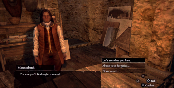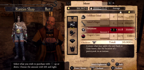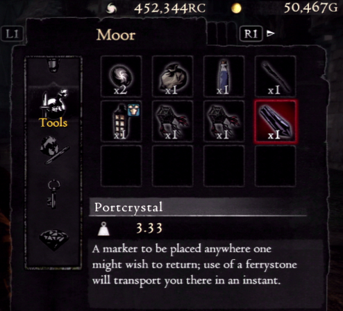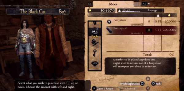 ::Note: The following blog contains some minor spoilers. Proceed with caution!:: Playing through Dragon’s Dogma, I used to lament at the high cost of seemingly inflexible application of “fast travel” – that is, the method by which a player may warp from one point to another on the Gransys map. If you’ve played the game, you know that the world of Gransys is quite large and sprawling, and often treacherous – particularly when traversed at nighttime. With no immediately accessible way to warp around, embarking on a quest often means a long and perilous journey ahead. Then again, you are an adventurer. On your first playthrough, the game effectively forces you to go on adventures and learn the lay of the land. The only shortcut it provides is in the form of Ferrystones – initially rare and expensive items that allow you to teleport back to the central hub town of Gran Soren, or anywhere else that you’ve laid down a Portcrystal, of which there only exists one on your first playthrough. Think of that as a fact of life: The game forces you to play the game. The sooner you come to terms with that, the sooner you’ll find yourself immersed in what is a truly unique experience. Savor your first playthrough of Dragon’s Dogma. It’s one for the ages. After completing the game, you will have the option of beginning New Game+, which preserves all of your progress and also opens new doors to the wonderful world of fast travel. When you next visit the shady but personable Mountebank of the Black Cat shop in Gran Soren, you will discover that in New Game+, he offers Portcrystals for the extravagant price of 200,000G per. Additionally, he continues to sell Ferrystones for 20,000G. At this point in your progress, that shouldn’t feel like a particularly formidable price. A quick quest or two or a medium-length romp in the open world should be all it takes to save up the funds for a Ferrystone. Portcrystals will require a more long-term finance plan, or you could just pawn off a bunch of the unneeded equipment you’ve amassed over the course of your first playthrough. Yes, “pawn” off indeed. So begins the meta-game of “colonizing” the land of Gransys. Once you have some Ferrystones and Portcrystals, you can set out to find ideal spots in the open world to place the crystals as fast travel points, ferrying back and forth as needed to expedite the journey. You can only place ten Portcrystals at a time, but with careful planning, that should be enough to ensure that you never have to journey too far between two points on your second and subsequent playthroughs of the game. ↑ The Black Cat is a shady shop in a back alley of the lower reaches of Gran Soren. ↑ Speak to Mountebank here to buy Ferrystones and Portcrystals. ↑ Portcrystals demand a hefty sum, but a little bit of questing or selling some of your equipment should be enough to afford at least one, and you only need ten total to maximize your fast travel ability. ↑ If you can find Fournival in town, he sells Ferrystones for 10,000G less, plus he’ll give a discount if you help him out during the game. . . . ↑ In my latest venture, I decided to place a Portcrystal just outside the Blighted Manse, one of the northernmost locations on the map. ↑ To lay it down, simply select and use it from the Tools in your inventory. It can be retrieved and replaced at any time. ↑ Use a Ferrystone to pull up. . . ↑ . . . your fast travel menu. You can select any location where there’s a Portcrystal. ↑ To dramatic effect! Just remember that once you use a Ferrystone, it’s gone forever. Again though, they’re cheap enough that you should always be able to afford a few once you’re a mid-level Arisen. The Portcrystals, meanwhile, will stay where they are until you move them, even lasting through multiple playthroughs of the game. It’s proven to be a fun “quest” in and of itself to set out and “tame the land,” trying to figure out the most strategic spots to lay down crystals. Try it for yourself and let us know where the best warp spots are!