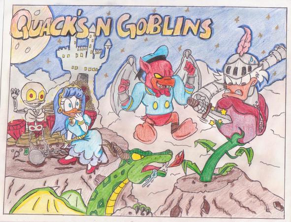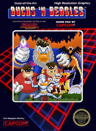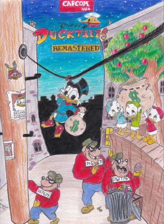 So with that in mind, it seemed more than fitting that we showcase user-submitted fan art that paid glorious homage to that forgotten pastime of gaming by the quarter (but you’ll find some scattered tributes to NES games from that era too.) Here are some of our favorite “Duckifications” of classic Capcom titles born unto cabinets honor of DuckTales: Remastered.
