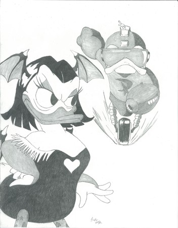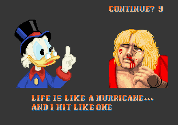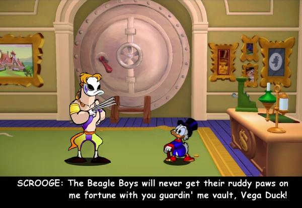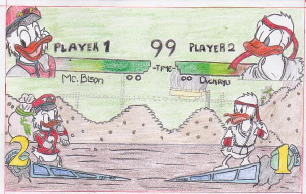 Andrew J and Javiera’s pics above took home the prize , but we simply couldn’t keep these to ourselves. Especially since DuckTales: Remastered is out NOW in the retail wilds of North America in addition to XBLA, PSN, Steam and the Wii U eShop. Oh, and I went ahead and threw in characters from other Capcom fighters (mostly Morrigan) So without further ado… Scrooge! Ryu! FIGHT !