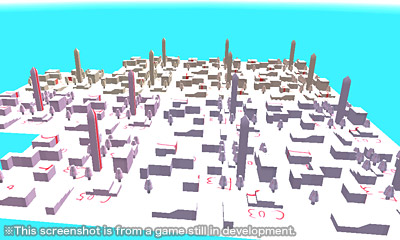 The general vibe of the city was starting to take form. The time had come to run a test, to see how vast we could make the city within our technological capabilities. We copied and pasted the same section of terrain over and over, and applied an enormous “resident texture.” Sure looks like a test to me.