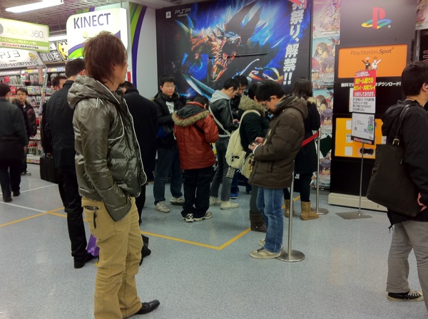 Whether you’re commuting on the train, sipping coffee at a cafe, or even just doing some light shopping in a department store, people playing on their DS or PSP can be seen everywhere. And if you happen to just glance at their screen while passing by, the chances that any one of them is playing Monster Hunter or Gyakuten Kenji 2 is extremely high. Just yesterday I was at a cafe where over half the tables had at least one person playing on a PSP. Would you be surprised if I told you that every screen I passed on the way my seat was of Monster Hunter Portable 3rd? I didn’t think so.