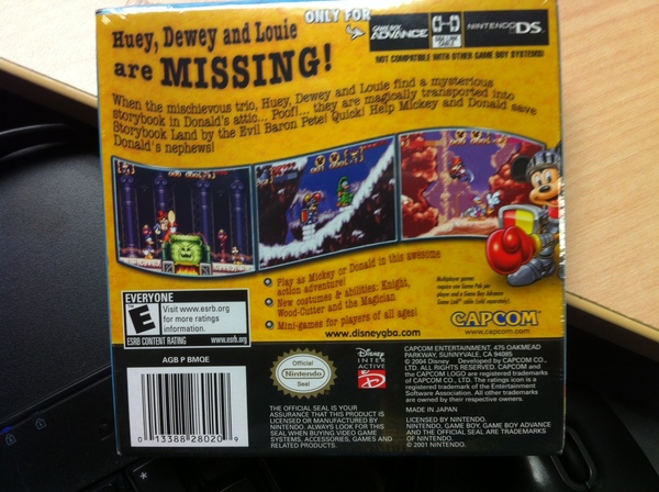 Today’s raffle prize is a shiny, sealed copy of Disney’s Magical Quest 3 starring Mickey & Donald for the GameBoy Advance. Perfect for those who finished Ducktales Remastered and were like, “I wanna save Huey, Dewey, and Louie again! ‘Cuz that’s what you do here.