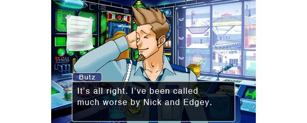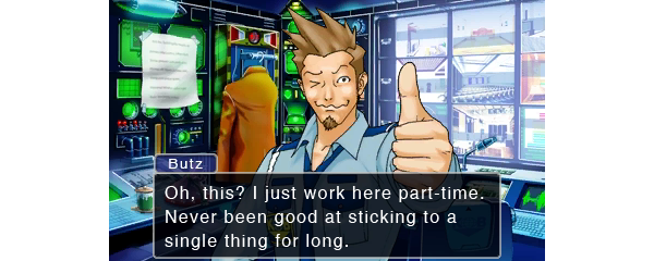 Host: We’ve spoken with prosecutors, legal aids, and defense attorneys on these special “Legal Edition!” segments, so it only makes sense to focus on a few of Mr. Phoenix Wright’s former clients today, starting with his very first one. Here with me now is Mr. Harry Butz–