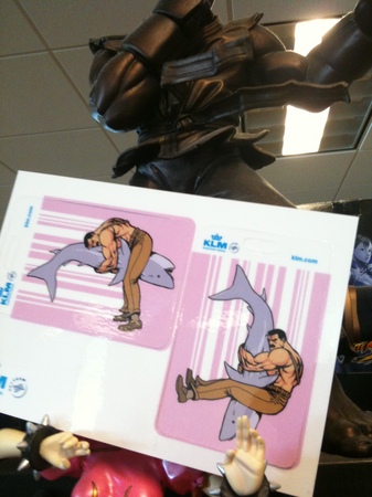 There’s a certain airline (see pic) offering free custom luggage tags and mine just came in and I had to share. Nothing says “sophisticated jet set traveler” like a picture of Mike Haggar pile driving a shark. Don’t forget to support Mike Haggar for re-election by purchasing Final Fight: Double Impact ( www.finalfightgame.com ) when it releases April 14th (XBLA) and 15th (PSN).