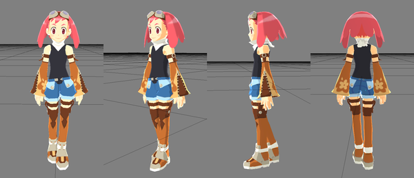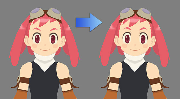 Oh, right! You’re talking about applying a “shader”. A “shader” is a program that applies light and shadow to 3D models to help convey their surface texture and lend a more polished feel to the game’s visuals. For Legends, it’s probably better to go with an anime-style cel-shaded look rather than the more realistic type of lighting found in games like Resident Evil and Monster Hunter. I’ve prepared just the shader for that, so see what we end up with below!