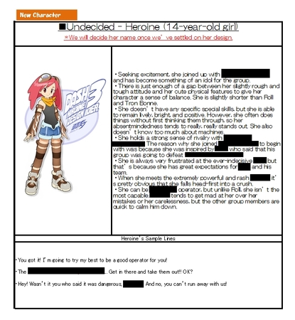 This sheet was created before the name “Aero” had been decided. It contains all of Director Eguchi’s thoughts on the character and what he thought her voice should sound like. However, at the time this sheet was filled out, there were still many things left undecided, so plenty of information was still missing.