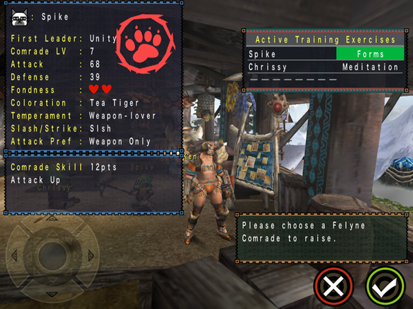 First of all, choose your Felyne very carefully. You don’t want to end up with a Felyne that doesn’t attack… or maybe you do; so make sure to check their Attack Preference listing for that. And to go with that, keep in mind their Attack Type (could be Slash, which can cut tails, or Strike, which can KO monsters) as well as their Temperament.