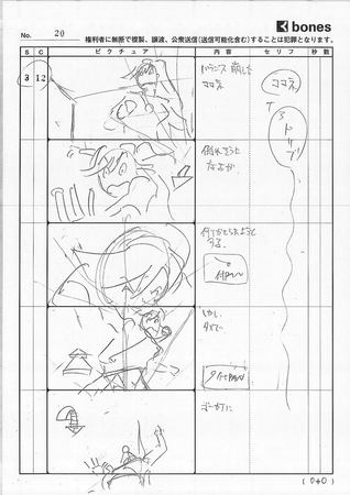 Before any animation work can begin, you must have a script, and it just so happens that I have a copy of the rough script Mr. Yamazaki drafted. Notice that it outlines just the character’s lines and the general backdrop and events for each scene.