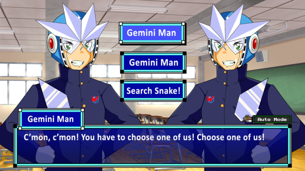 With the world at peace and the school being carefully monitored by the beloved Dean of Robots, Mr. X, you’ll have plenty of time to make friends and forge new bonds with your fellow Robot Masters when you’re not busy with class and homework. Fortunately, you won’t be alone in your quest to win over the metal heart of one of eight unique ‘bots from classic Mega Man games, as classic characters will help you out alongside brand new features! See what your classmates think of you and find out what gifts they’re weak to with Roll Call, sit back and enjoy the story with Auto Mode, or find out what other robots are talking about on social media with Beatbox.