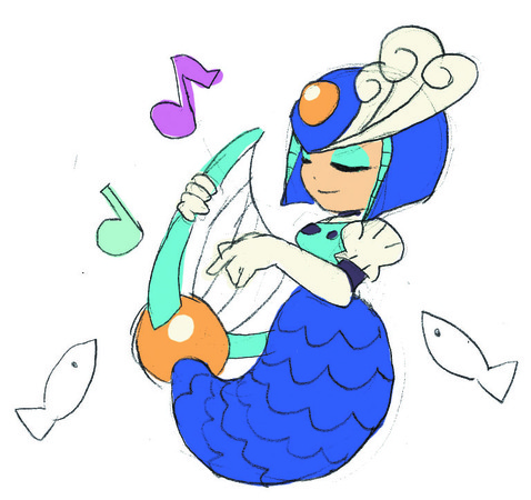 As per the Mega Man: Robot Master Field Guide, Splash Woman, like the game’s seven other Robot Masters, was tricked by Dr. Wily and re-programmed to be evil. She really stands out from the others, not only due to the long, deadly Laser Trident she’s packing, but also due to her bottom half resembling a scaly blue mermaid.