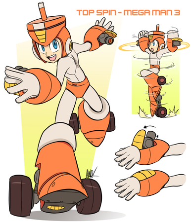 Top Man also received a few different entries. This art really stood out by blending Mega Man’s iconic design with Top Man’s aesthetics, telling you exactly which weapon he’s using at a glance with the top built right in to Mega Man’s helmet. We love the pop-out jets that help him spin!