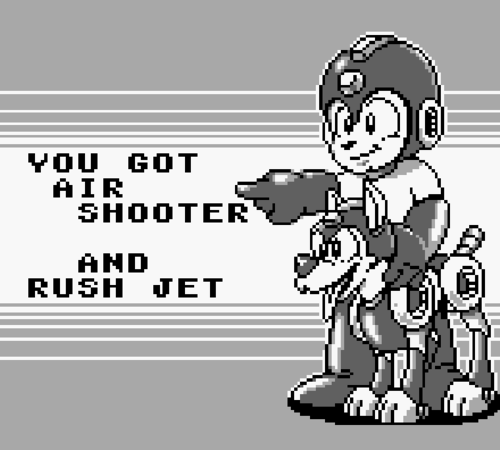 In the case of MMII, it blends elements of NES Mega Man 2 and 3, so you get eye-rubbing, reality-questioning screens like those below. An Air Man weapon with the Rush Jet? Sliding in Mega Man 2? Besting Needle Man with the Air Shooter?