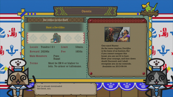 Then – after this “nap time” – we can go back to being real hunters and take on the quest “Deviljho in the Buff”! Sounds terrifying, but we’ll be livestreaming it today at Twitch starting around 11am PT !