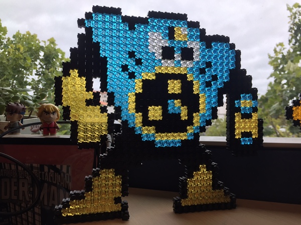 Back in the MM2 days, Air Man was always my first stop due to a suggestion by yesterday’s momentous Nintendo Power coverage . The stage wasn’t too difficult, and other than a few seemingly unavoidable tornado swarms he was an easy boss to beat. As you can see from the photo above, I’m something of a “fan” (wow that wasn’t even intentional) of his design and have a PixelBlock version standing on my desk. Built him with as much excitement as Dr Wily, I bet!