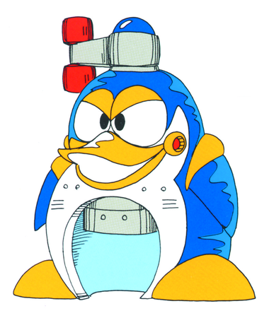 The slight confusion I felt when seeing him back in 1990 was partly due to his stage. It starts out on a crystalline surface, or maybe lunar surface, but at the very least something that gels with the reflective crystals on Gemini Man’s body. But then you go in deeper and the stage becomes some kind of tadpole-choked breeding ground, complete with robot penguins and dragonflies!