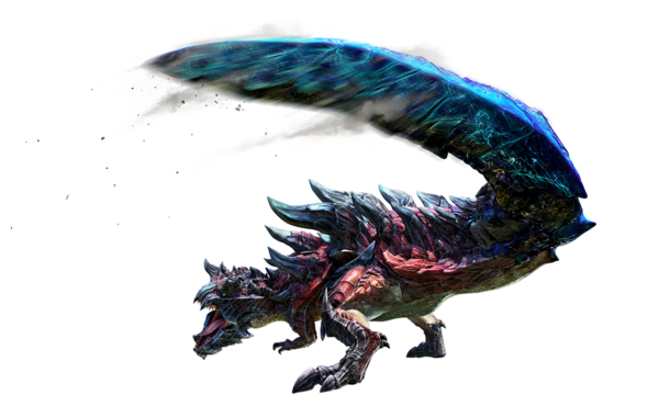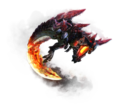 Known as “The Scorching Blade,” the final flagship monster in MH Gen is a fiery Brute Wyvern that reigns as king of the Jurassic Frontier, and will make short work of any monster unfortunate enough to cross its path. You can tell just by the flame-shaped spikes on its back that this is one fearsome monster, but even more so is the fact that it virtually has a sword for a tail! The tail itself is longer than half the total length of its body, and coated in hard minerals, thanks to the repeated scraping of it on the ground and other surfaces during its maturing process. This essentially turns it into a deadly blade that Glavenus uses to make mincemeat out of its prey. If that wasn’t enough, the minerals in its tail contain combustible components, allowing Glavenus to ignite flames by striking it on the ground like a match. After a few strikes, its tail will turn red-hot, increasing its attack power. It eventually cools down and becomes rusty, but don’t let your guard down. Glavenus is able to restore sharpness to its tail by grinding it with its fangs, and can even shoot out a magma-like substance from its mouth at high speed.