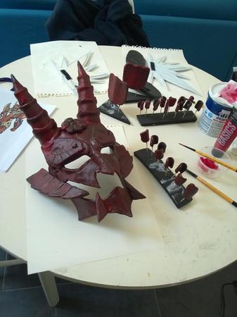 Kuma Cosplay worked really hard on this and the results are simply amazing! I’ll share some pictures below, but if you want to get the full idea how much work goes into making a Monster Hunter armor cosplay, you check out this album containing pictures of this equipment set in various stages of the development process; like this one: