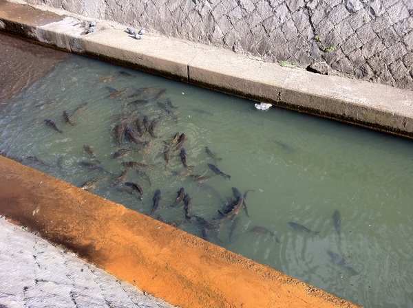 Aside from the food, I have really just been enjoying walking around and taking in the sites. I found a river that runs next to my place and there were people feeding the fish that day. Just look at how many of them there are!