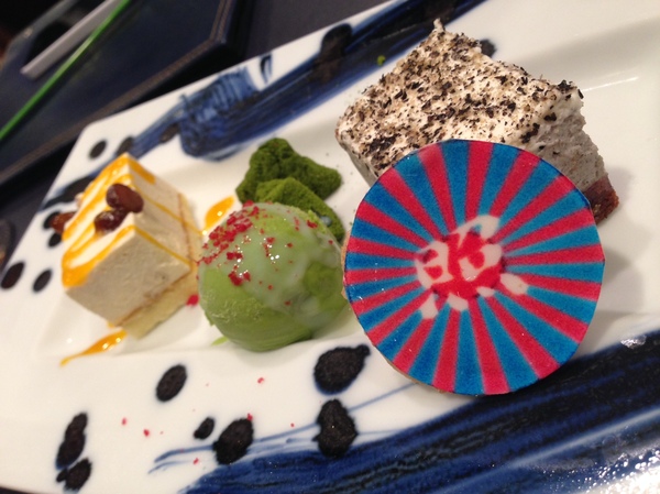 Later, this adorable Okami dessert graced the table and somehow sprouted flowers all around us. OK, that part didn’t happen. But in my mind, it was beautiful.