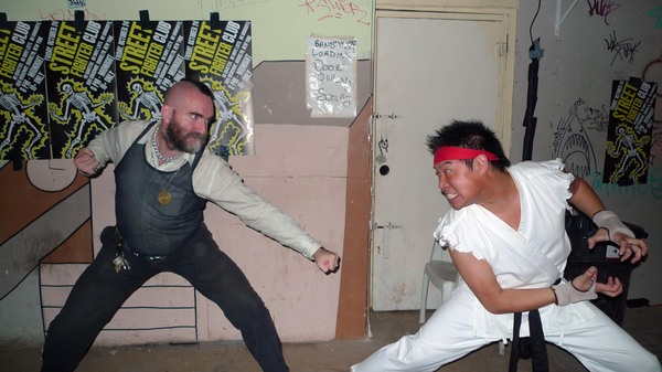 Street Fighter Club BLEW UP Brooklyn last night. Were you there? Over 300 of the East Coast’s biggest Street Fighter fans turned up at Chief Bodega in Brooklyn to be treated to a storefront outfitted with an awesome array of phoney Street Fighter products , two secret basements filled with Super Street Fighter II Turbo HD Remix and Street Fighter IV, free pizza ‘n sodas and (from all accounts) an excellent dj. There were even some minor celeb sightings, including the producer of Street Fighter Devotion.com and Mike Fass, who played Zangief on College Humor’s Street Fighter: The Later Years .