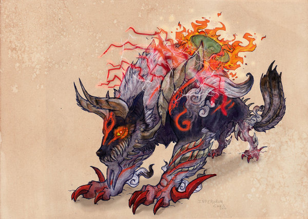 This absolutely beautiful fan art comes from DeityofShadows and is actually the second MH x Okami crossover I was able to find. The following ” Zinogaterasu ” piece is from InferorumCanis :