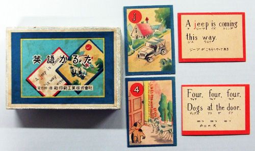 Speaking of karuta cards, I bet you thought I made up Taifu Toneido’s special English cards, but in fact, English ones do really exist . They’re used as a way to teach Japanese speakers English words and even idioms! The set above is from right after WWII, when demand for English karuta cards began to really take off. There are even special events using them and special English version cards for different cities around Japan !