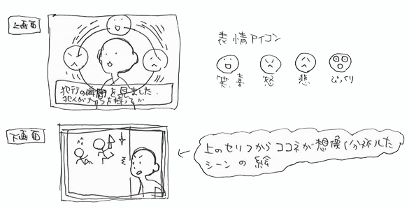 Yamazaki : Of course I am. In fact, here’s one I was thinking of just now: a game mechanic that would allow players to review the major facts of a case and draw a new conclusion. We’ll call it “Revisualization”!