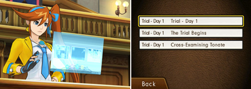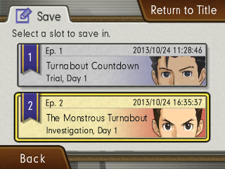 These two icons do indeed bring something new to the series that fans have been waiting for: a backlog where you can review the current conversation, and not one, but TWO save slots! No longer will you have to choose between saving at that spot where Phoenix slams the opposition and that choice bit of philosophical dialogue between your favorite characters.