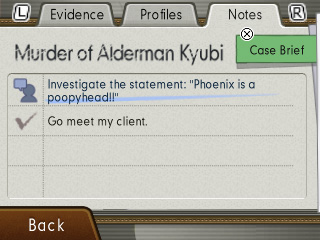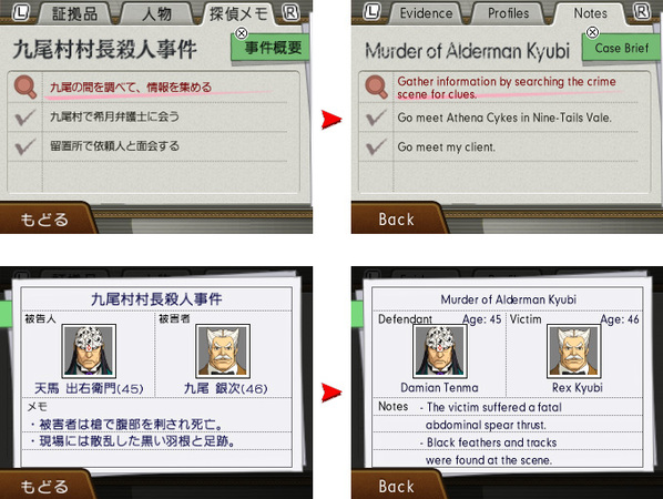 Thank you very much Ms. Ikawa and Mr. Daigo for that look into the Mood Matrix and the other new features that have been added to this installment of Ace Attorney series. Among the plethora of other new features that Mr. Daigo didn’t have time to mention, there are four really useful ones that I’d like to briefly share with you, along with some interesting localization issues we had along the way regarding the user interface.