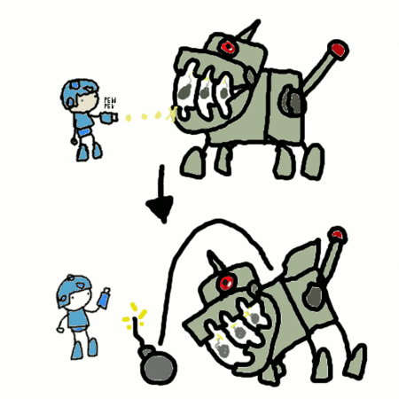 Normally having so many different attacks weakens the design’s impression, but I enjoyed imagining this thing unleashing one attack after the next, making Mega Man’s life miserable. I can tell you had a lot of fun drawing and creating this.