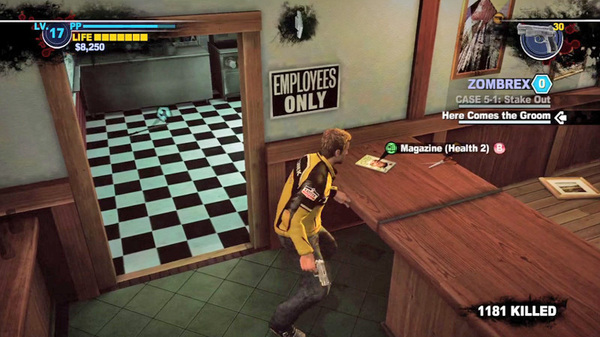 Many special magazines are sprinkled throughout Fortune City, each capable of granting Chuck special advantages. Take the Health 2 mag that sits on the counter in the northwest corner of Yucatan Casino’s Baron Von Brathaus eatery—when carried, this handy magazine doubles the effectiveness of all health-restoring food and drink items. Other magazines’ benefits include tripling the durability of certain types of weapons and increasing the amount of Prestige Points Chuck earns for rescuing survivors and defeating psychopaths. No matter the issue, magazines are sure to help Chuck out—but because they take up room in his inventory, he must be smart about the ones he chooses to carry.